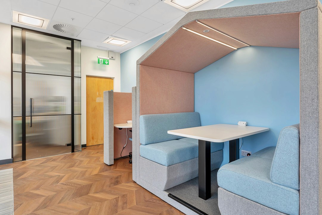 Intimate meeting space for 2 people, not bookable as a space, but great for quick catch ups.