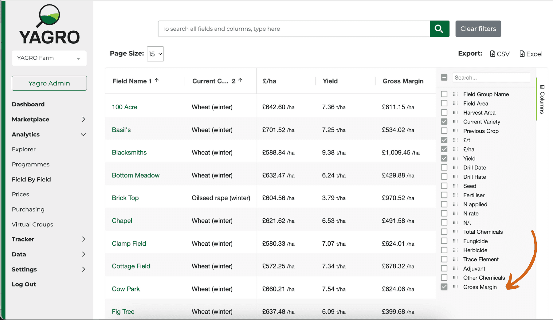 Gross Margins have also been added as a filter within the 'Field by Field' tab to allow greater understanding and interrogation of individual field performance.