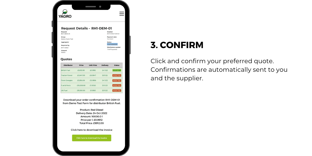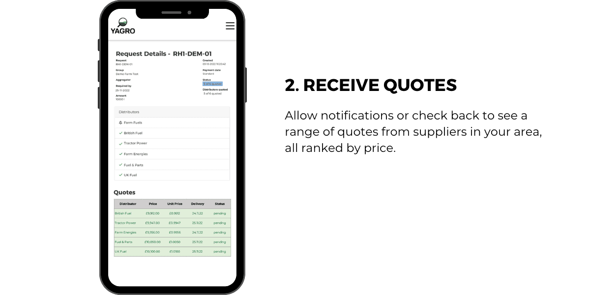 Our suppliers quote in a blind auction for your volume and delivery postcode, keeping their quotes competitive.