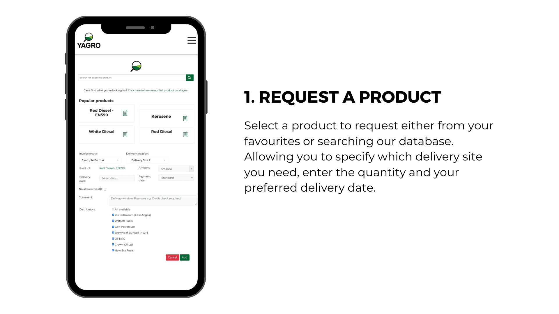 Connect with fuel suppliers in your area to request and order fuel on mobile or web.